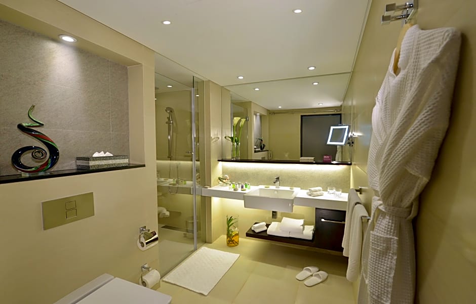 في الموقع، يقدم مطعم La Mosaique مجموعة واسعة من خيارات الطعام تشمل الأمريكية والإندونيسية والإيطالية والكورية والمتوسطية والشرق أوسطية والمغربية والبيتزا والمأكولات البحرية ومطعم لشرائح اللحم والسوشي والتايلاندية والمحلية والآسيوية والدولية وخيارات الشواء (باربكيو). قد تتضمن الأمسيات موسيقى حية أو عروضًا بدون تكلفة إضافية. ولتوفير مزيد من الراحة تتوفر خدمات نقل مكوكية ومرافق اجتماعات/ولائم ومنتجع صحي وخدمة نقل من وإلى المطار وتدليك مقابل رسوم إضافية. يوجد مكتب استقبال يعمل على مدار 24 ساعة وغرف لغير المدخنين لتلبية احتياجات الضيوف المختلفة.